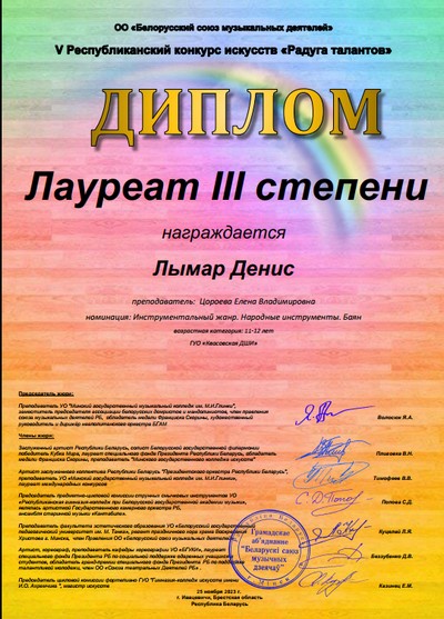 Лауреат III степени – Лымар Денис (учитель Цороева Е.В.);
