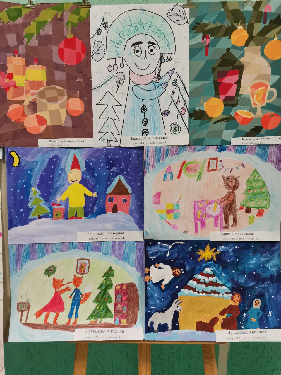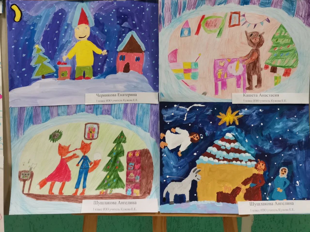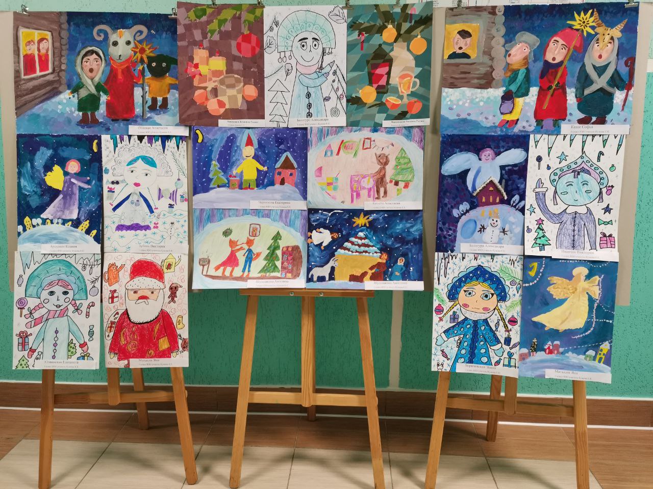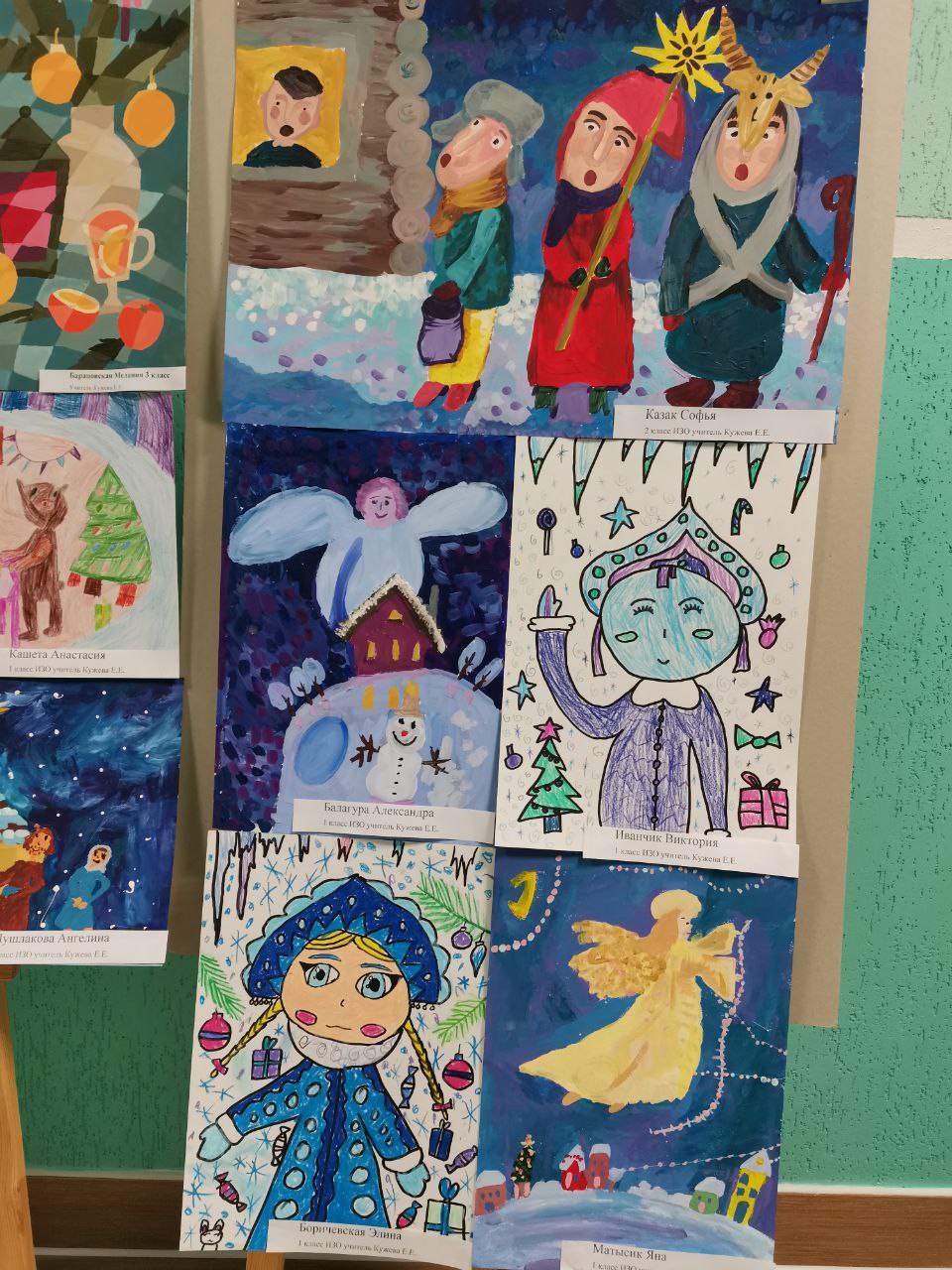 Тут ожидание встречи с дедом Морозом и Снегурочкой, вера в Рождественского ангела, калядование, новогодние натюрморты. Все нашло отражение в ярких работах юных художников. Эти чудесные творческие работы даже взрослых, пусть на мгновение, но все же, возвращают в счастливое, беззаботное детство!