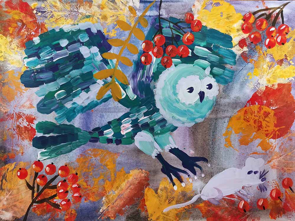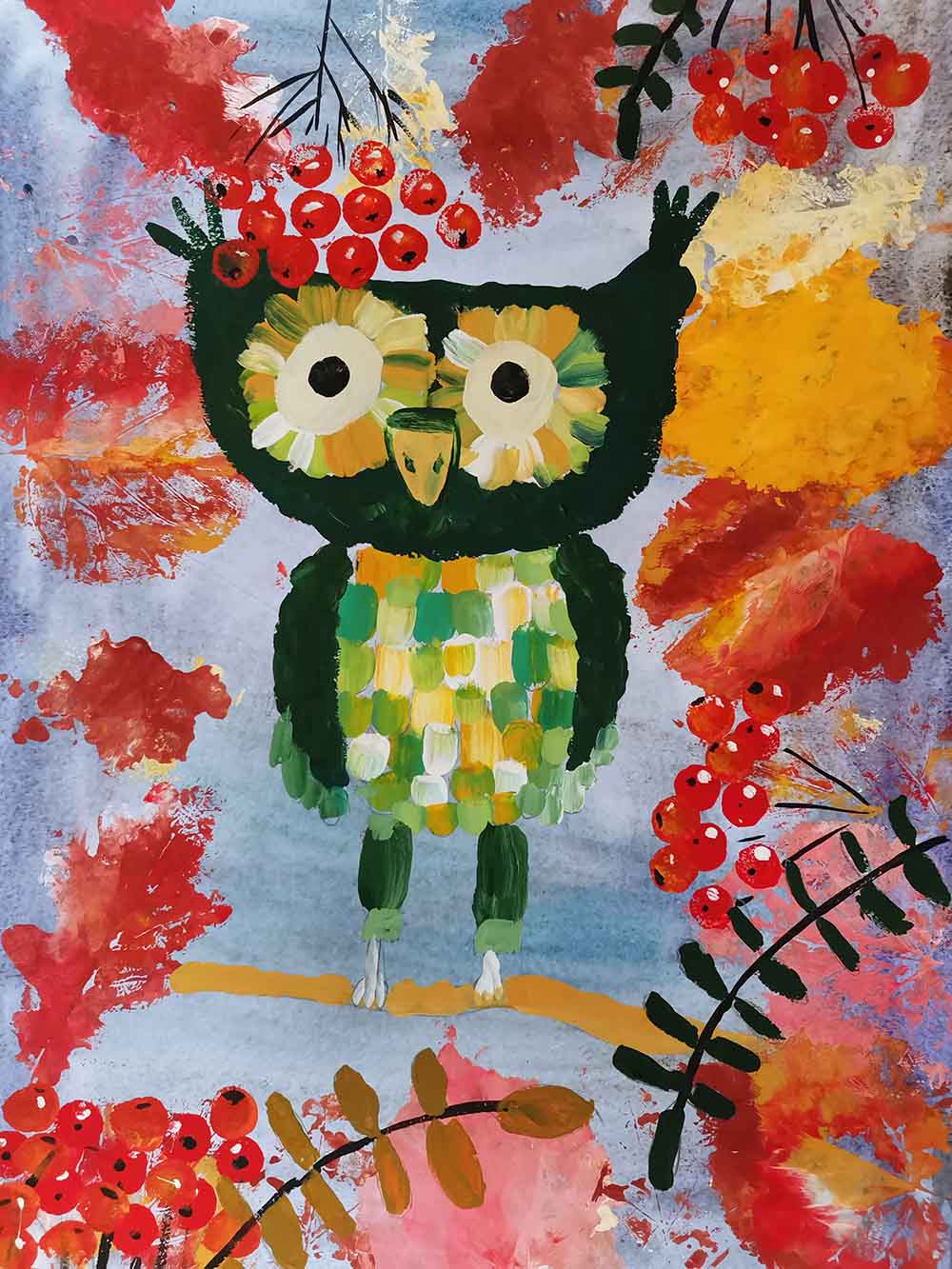 Теплый привет прилетел из холодного Нефтеюганска. Международный открытый дистанционный конкурс-выставка творческих работ в области изобразительного и декоративно-прикладного искусства «Мы живём в Югре» в рамках реализации гранта Губернатора округа ХМАО стал для учениц 2 класса (учитель Кужева Е. Е. )отделения изобразительного искусства призовым. ГРАН-ПРИ получила Казак Софья. Диплом Лауреата 1 степени - Онацкая Анастасия. Диплом Лауреата 1 степени - Говор Вероника. Диплом Лауреата 1 степени - Павленко Самира. Живописные оттиски осенними листьями покорили членов жюри. А зеленая совушка в исполнении Софии не оставила никого равнодушными.