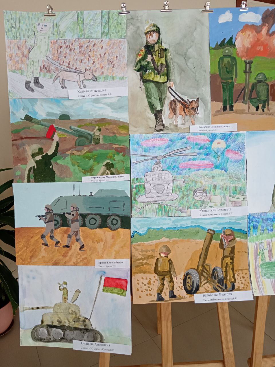 По доброй традиции, в предверии праздника Дня защитника Отечества, ученики отделения изобразительного искусства подготовили выставку "Не ради званий и отличий" посвящённую современной белорусской армии.