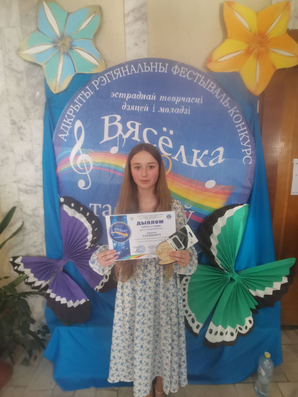 30 марта в Озерском центре культуры состоялся 7 открытый региональный фестиваль-конкурс детей и молодёжи "Вясёлка талентаў". В конкурсе состязались лучшие детские творческие коллективы Гродненской области. Ельяшевич Арина, учащаяся нашей школы (учитель Синельникова С.В.) в номинациии "Солист-вокалист" была награждена дипломом Лауреата 2 степени. Поздравляем Арину и её учителя с заслуженной победой и желаем им дальнейших творческих успехов!