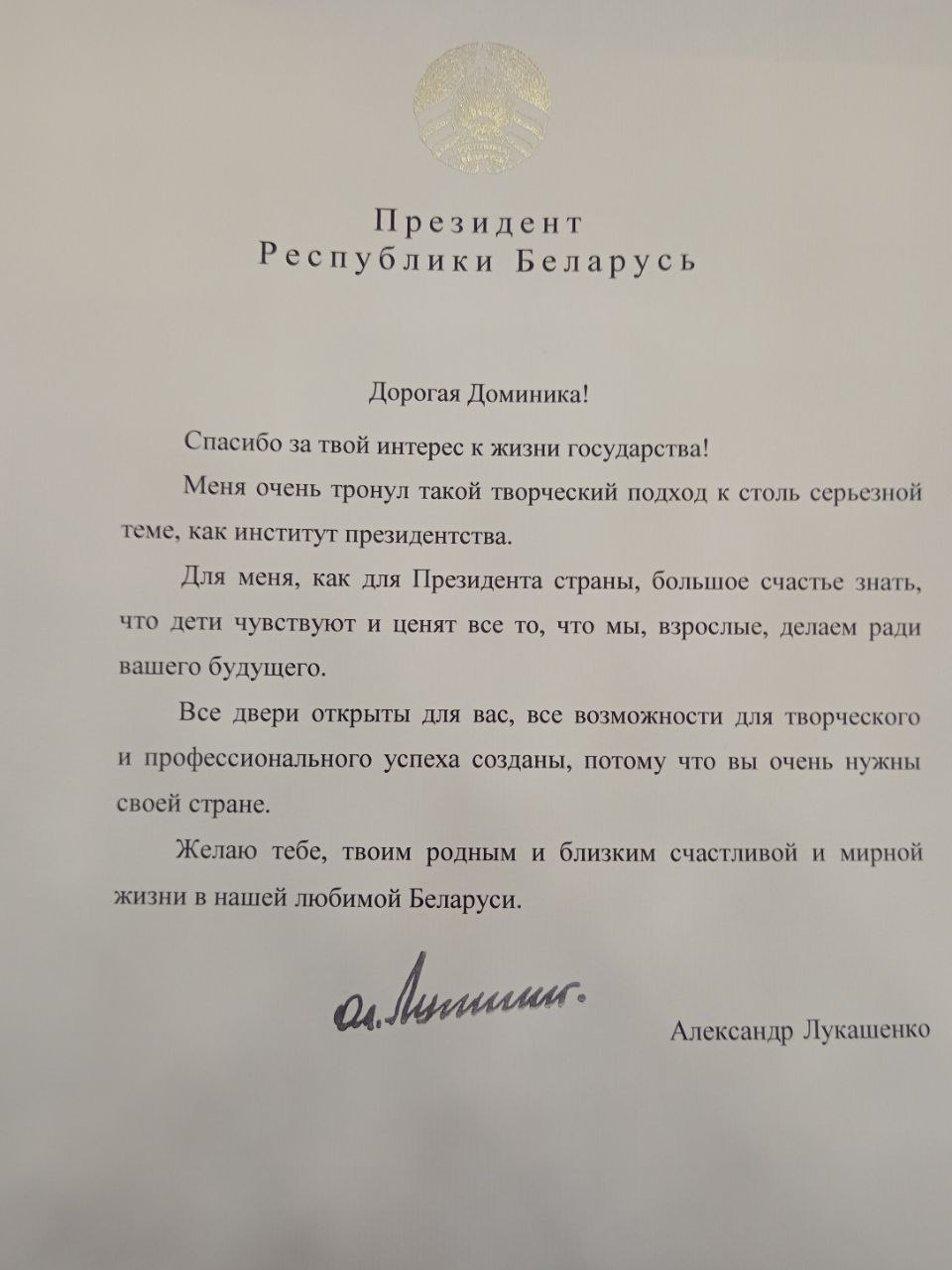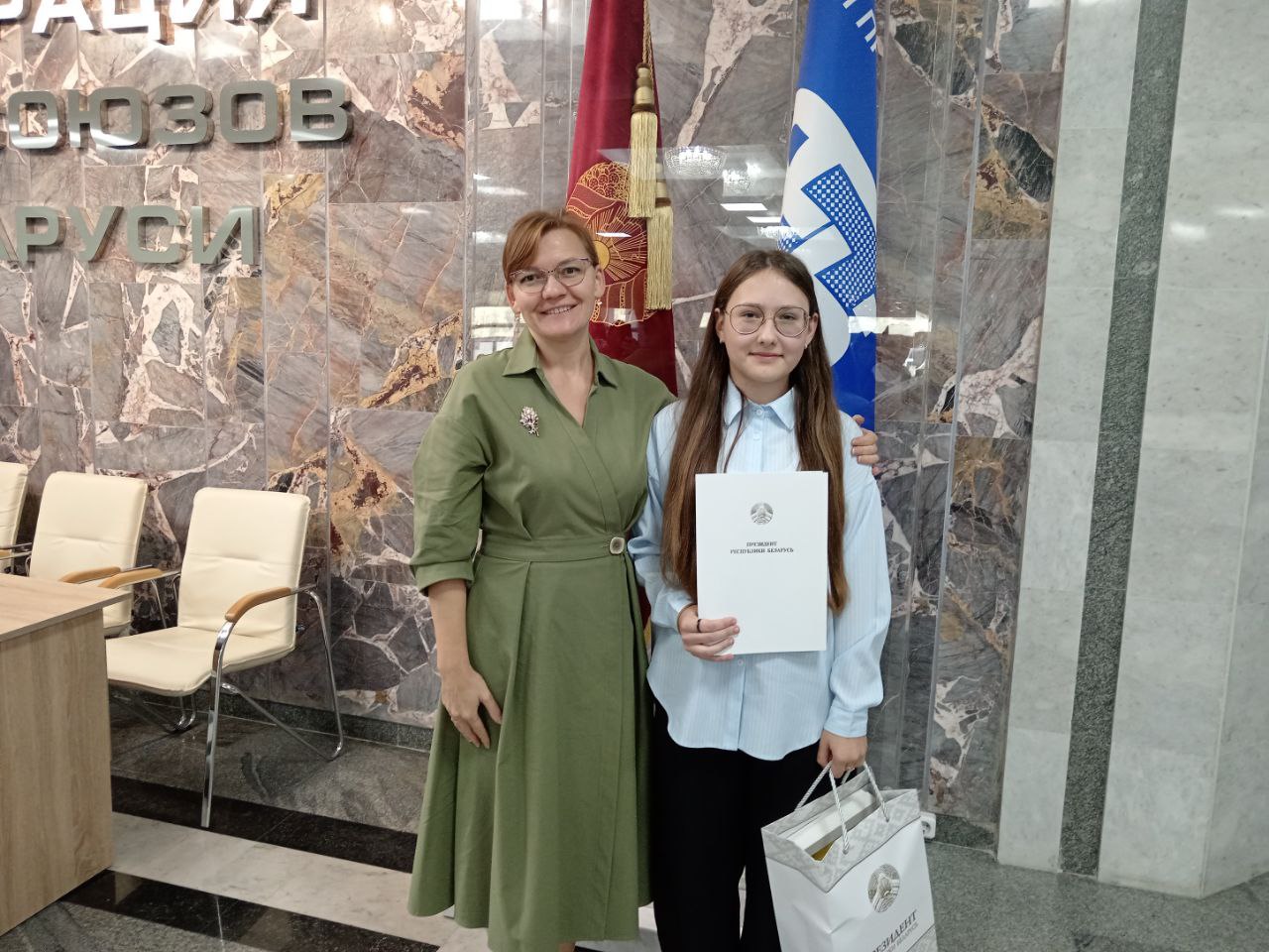 Ярким воспоминанием для ученицы 4 класса ИЗО, Венскович Доминики (учитель Кужева Е. Е.), стала поездка в Минск 24 сентября на вручение благодарственного письма и подарка по его итогам.