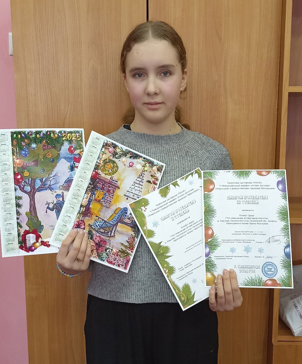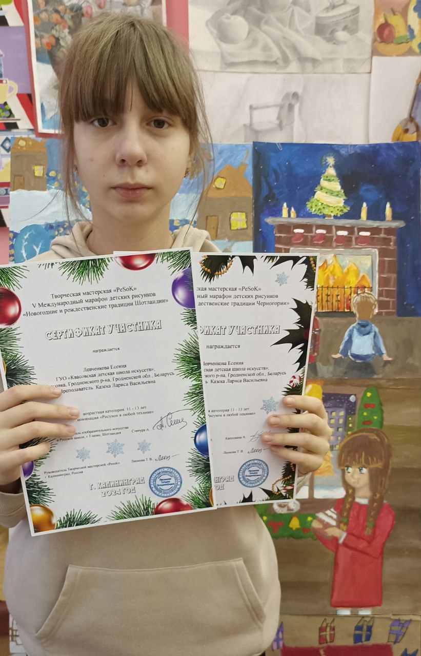 V Международный конкурс-марафон детских рисунков "НОВОГОДНИЕ И РОЖДЕСТВЕНСКИЕ ТРАДИЦИИ СТРАН МИРА", который проходил в г. Калининград (Россия), в этом году принес победу учащейся 5 класса нашей школы искусств Почебут Дарье.