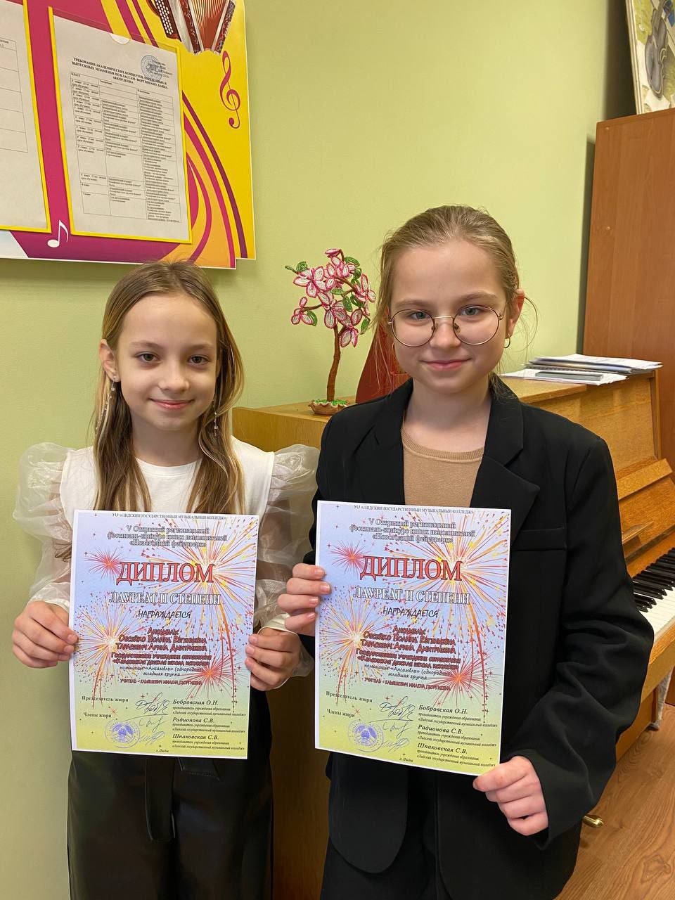 фортепианный ансамбль Овсейко Полина и Тарасевич Арина (учитель Ельяшевич М.Г.) были отмечены дипломом Лаурета II степени,