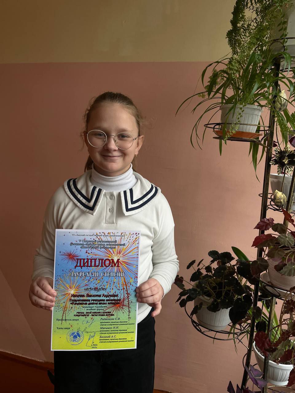 В номинации «эстрадное пение» дипломом Лауреата III степени награждена учащаяся Ельяшевич Арина (учитель Синельникова С.В.).