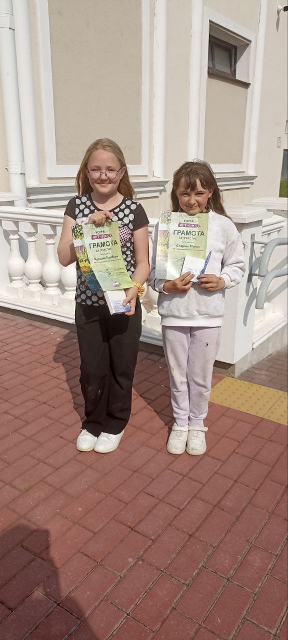Онацкая Анастасия, Говор Вероника, Куркина Варвара участвовали в средней возрастной группе. Это самая многочисленная группа участников. Девочки награждены дипломами участников. А так же впервые участвовали Иванчик Виктория и Слезник Мария, младшая возрастная группа. Они стала обладателем Диплома 1 степени и Дипломом 2 степени