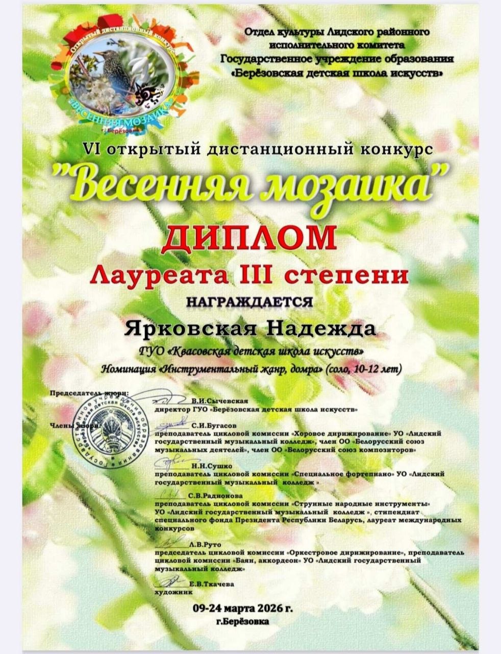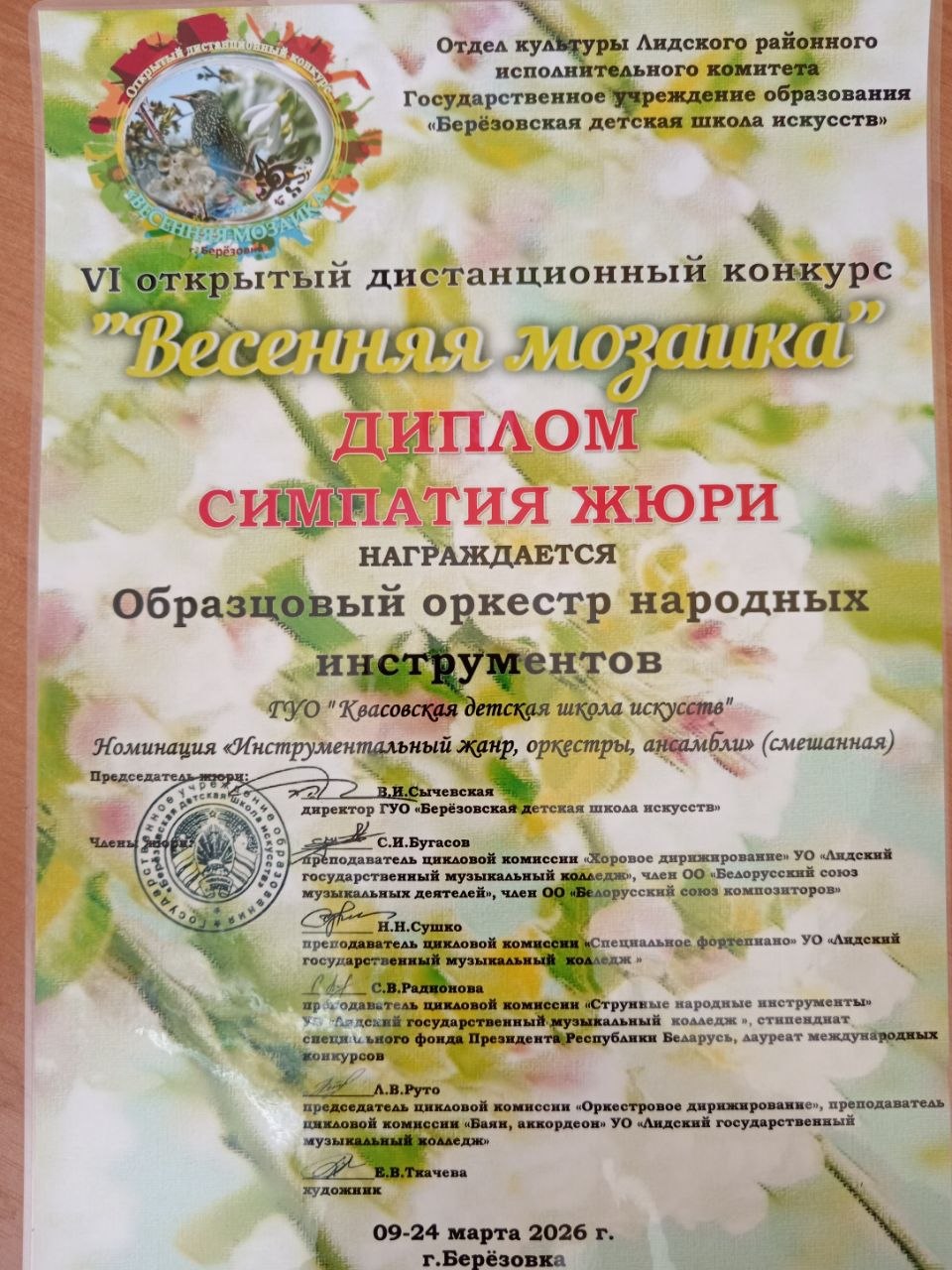 Подвёл свои итоги VI открытый дистанционный конкурс "Весенняя мозаика" проходивший в городе Березовка.